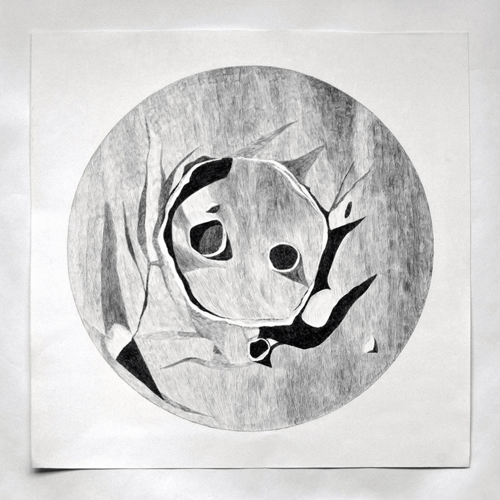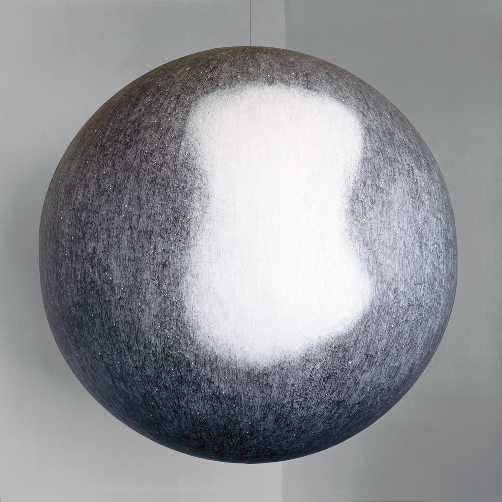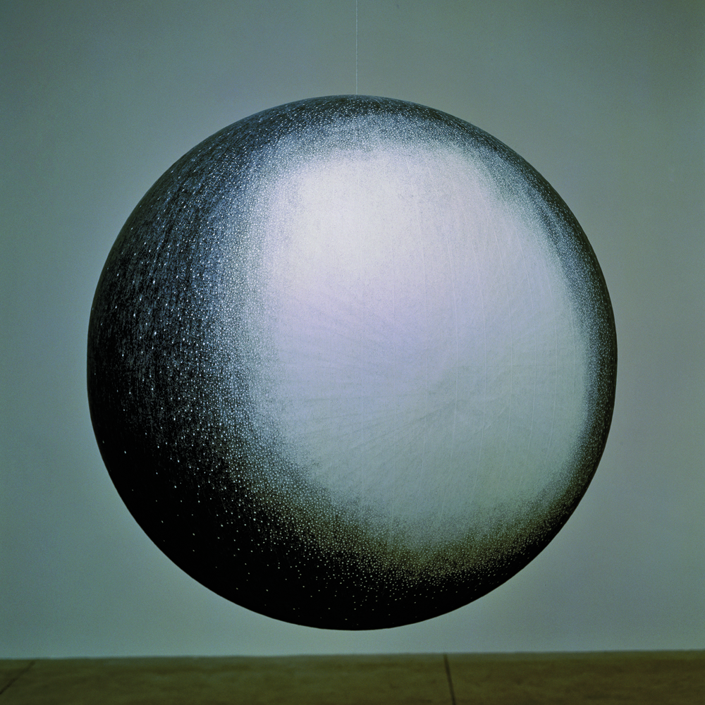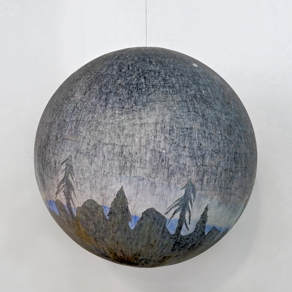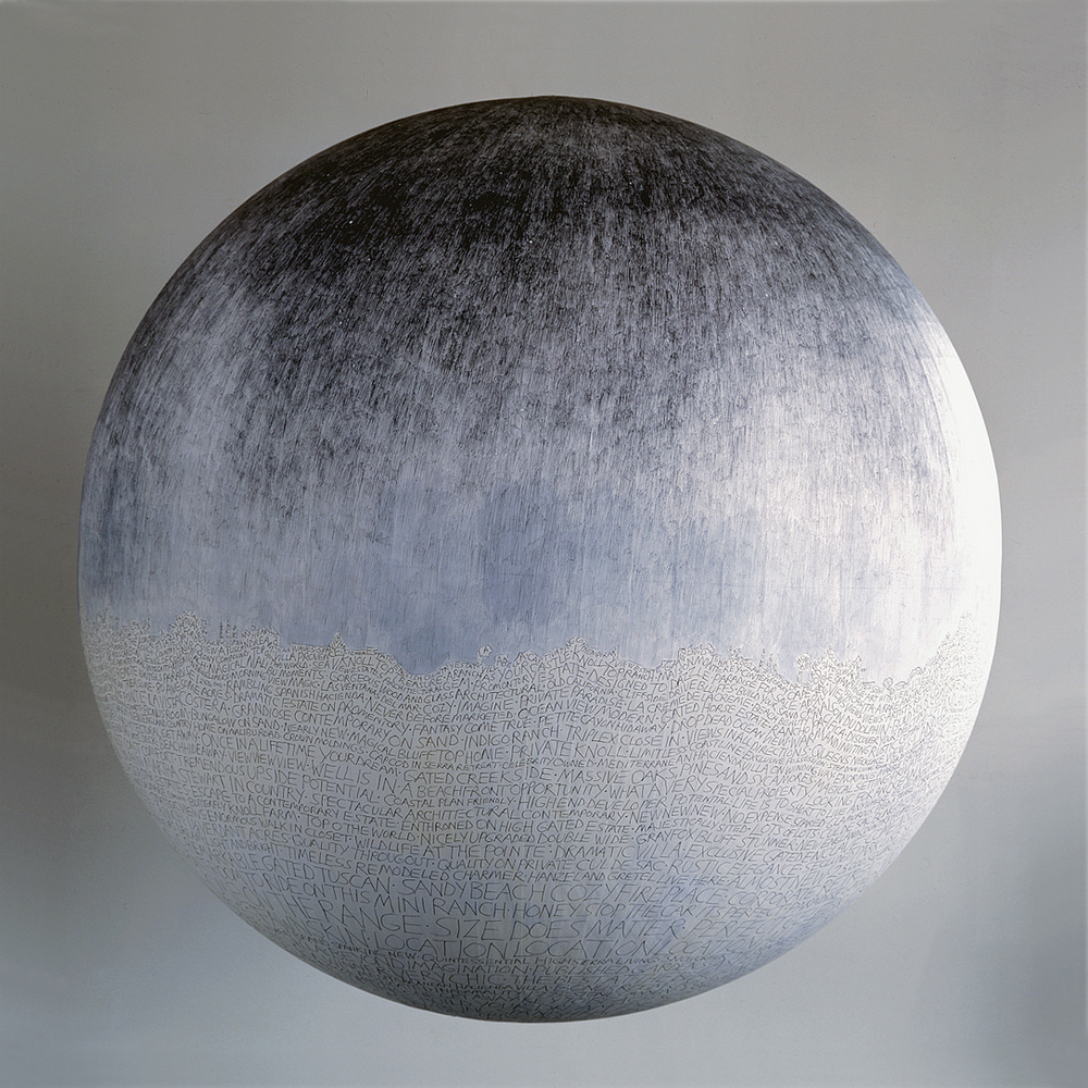 The evolution of the astronomy work began with flat drawings (on sheets and in books) of stars and deep sky objects, often in a grid format, other times within a circular motif, as you would see it through the telescope's viewfinder. It was a natural progression for the drawings to move from circular to spherical and in the late 1990's, Russell began creating his signature globe drawings, introducing three-dimensional sculptural elements into his work.