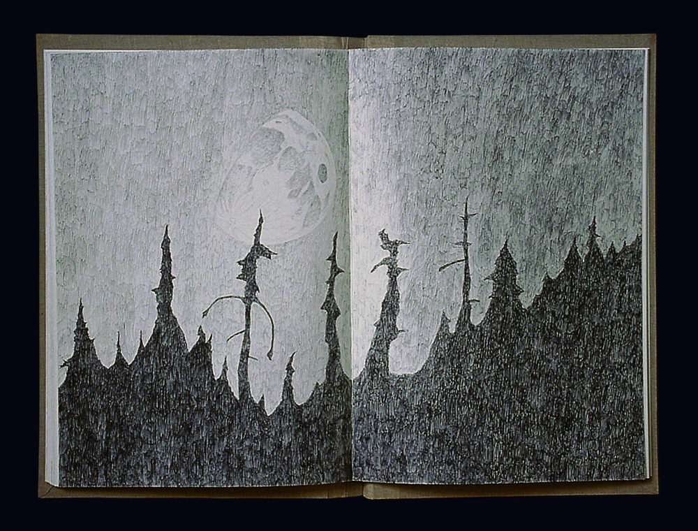Russell is also known for his books: small sketchbooks, custom made books with overlays, atlases of the heavens, and a few enormous and elaborate "field guides."
