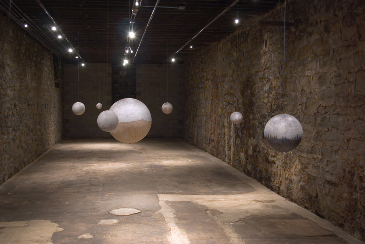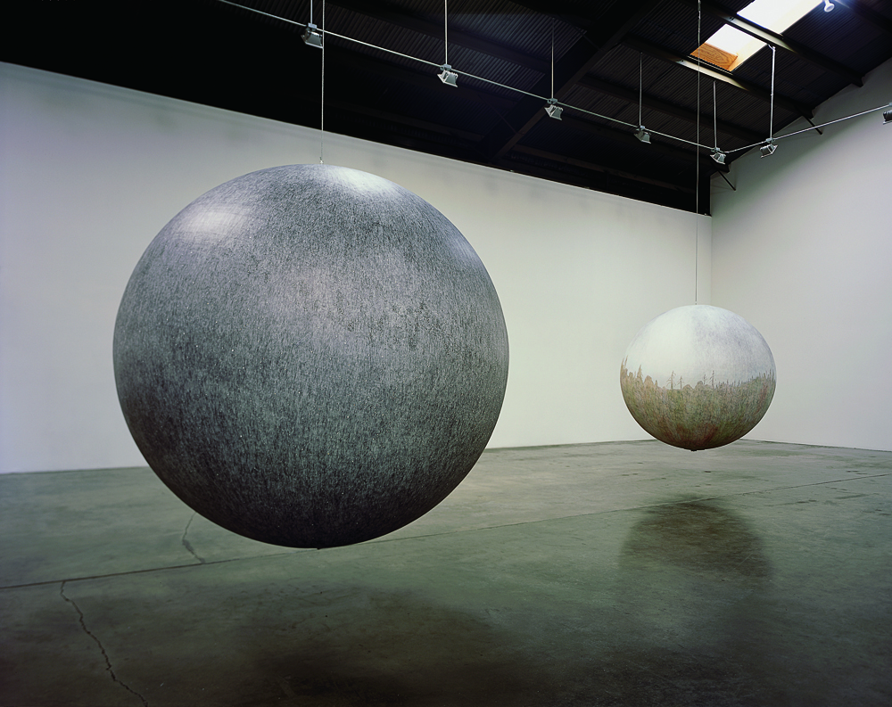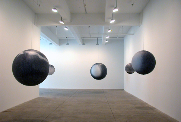 Two 72 inch diameter globe drawings in the 2005 solo exhibition at ShoshanaWayne Gallery, Santa Monica, CA