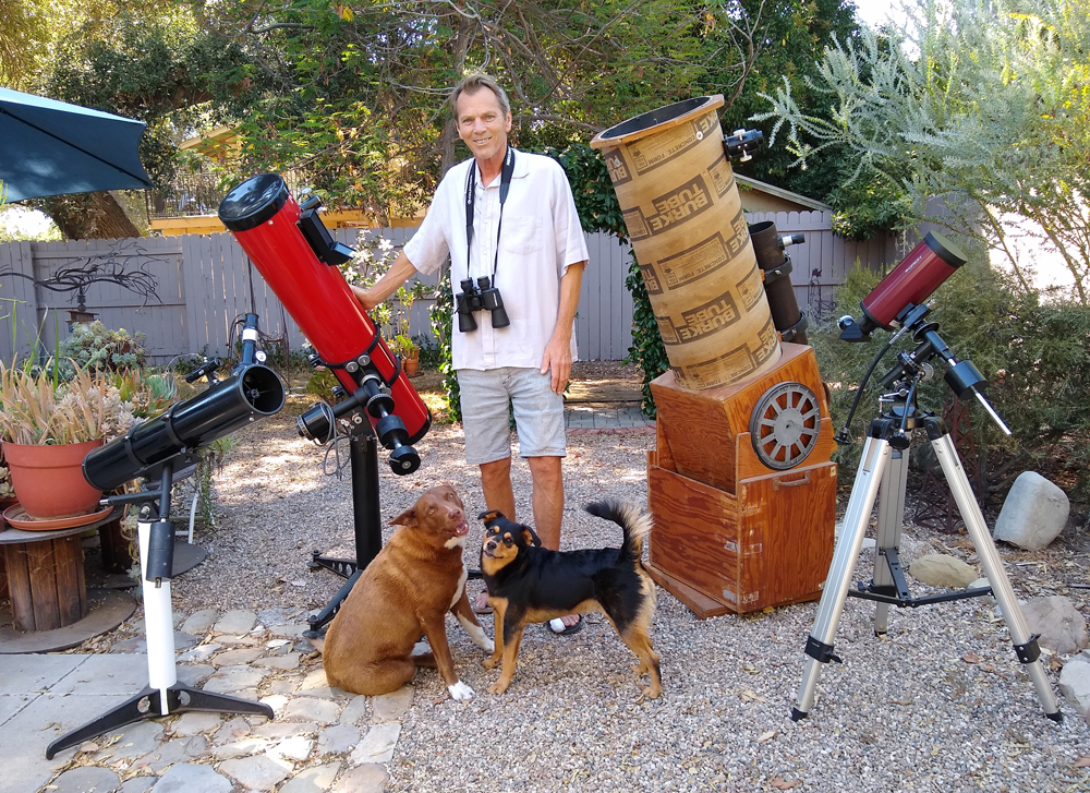 2020: Russell with his collection of backyard telescopes – and observing buddies